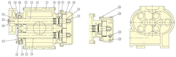 B:因為轉子是三葉直線形,所以它不像螺旋式轉子那樣,因軸向微小變位而使轉子相互接觸。因此,只在剖面上保證轉子間的間隙即可,不需要像轉子螺旋式那樣再加上軸向變位,以致間隙過大。這種風機的效率比相同尺寸的轉子螺旋式風機好得多。因轉子采取特殊外形,便于保持轉子間的相互間隙,使效率進步提高。